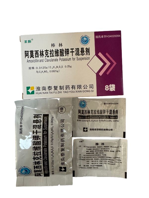 2. Amoxicillin and Clavulanate Potassium for Suspension:0.3125g(Contain: Amoxicillin 250mg and Clavulanate Potassium62.5mg); it’s for adult;